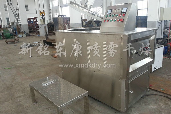 粉體物料與粘合劑在圓筒形容器中由底部混合漿充分混合成濕潤軟材,然后由側置的高速粉碎槳切割成均勻的濕顆粒。
